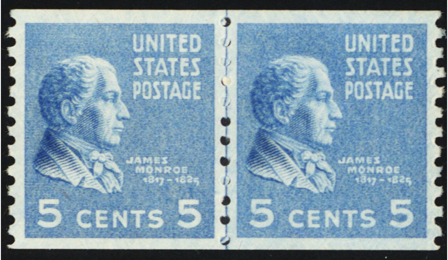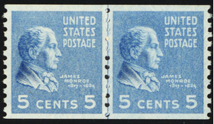 845, Mint Superb NH 5¢ Coil Line Pair - Stuart Katz