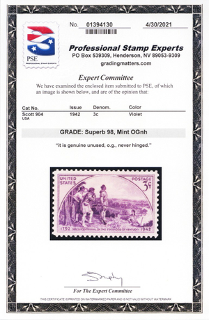 904, Mint NH 3¢ Superb - With PSE Graded 98 Certificate - Stuart Katz