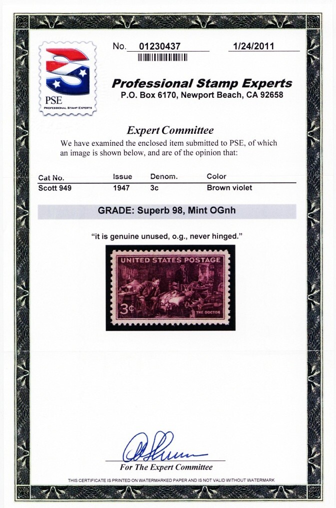 949, Mint NH 3¢ Superb With PSE Graded 98 Certificate * Stuart Katz