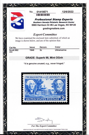 982, Mint NH 3¢ Superb With PSE Graded 98 Certificate * Stuart Katz