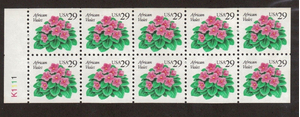 African Violet Flowers Booklet of 20 X 29¢ Stamps * Stuart Katz