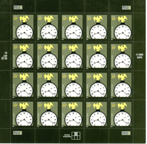 American Clock Sheet of Twenty 10 Cent Postage Stamps Scott 3757