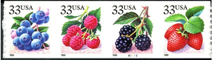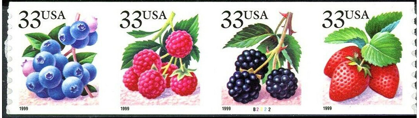 Berries Coil Roll of One Hundred 33 Cent Postage Stamps Scott 3302-05