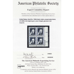 No refunds will be made after 60 days after the sale date unless extra time is granted. Due to the high cost of obtaining certificates we will only refund the cost of the stamp and not the cost of the certificate. For U.S. stamps only certificates from either APS, PSE or from the Philatelic Foundation are accepted, however "graded" certificates or "encased" items are not accepted.