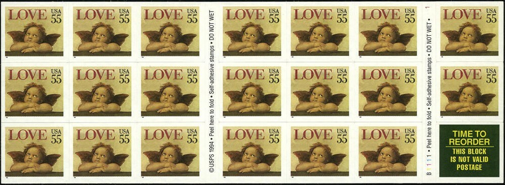 Charub Love 55 Cent Stamps Pane of Twenty Postage Stamps Scott 2960a