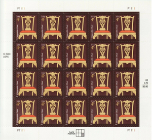 Chippendale Chair Sheet of Twenty 4 Cent Postage Stamps Scott 3755
