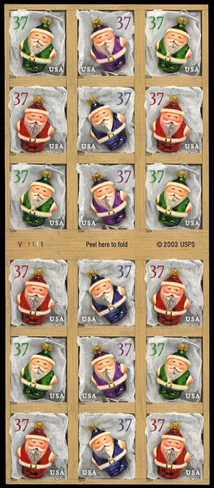 Christmas Ornament Booklet Pane of Eighteen 37 Cent Postage Stamps Scott 3894b