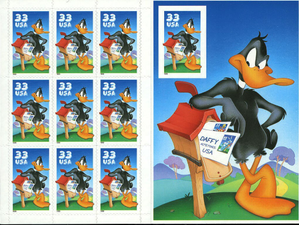Daffy Duck Sheet of Ten Stamps with Imperforate 10th Stamp Error Scott 3307