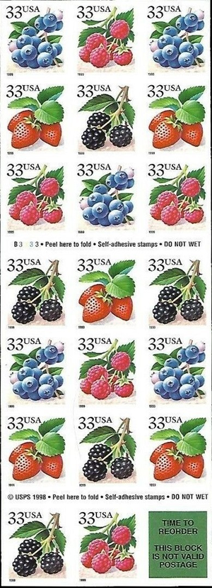 Fruit & Berries Pane of Twenty 33 Cent Postage Stamps Scott 3297b