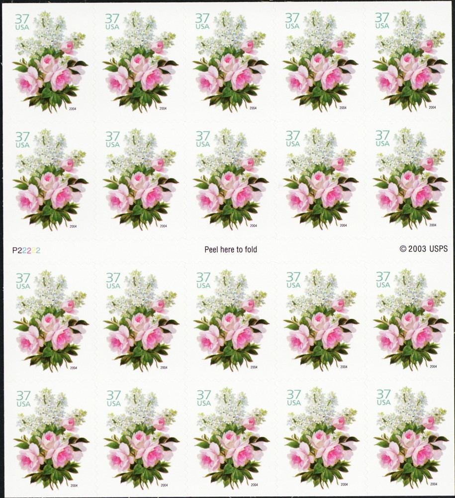 Garden Bouquet Flowers Pane 37 Cent Postage Stamps Scott 3836