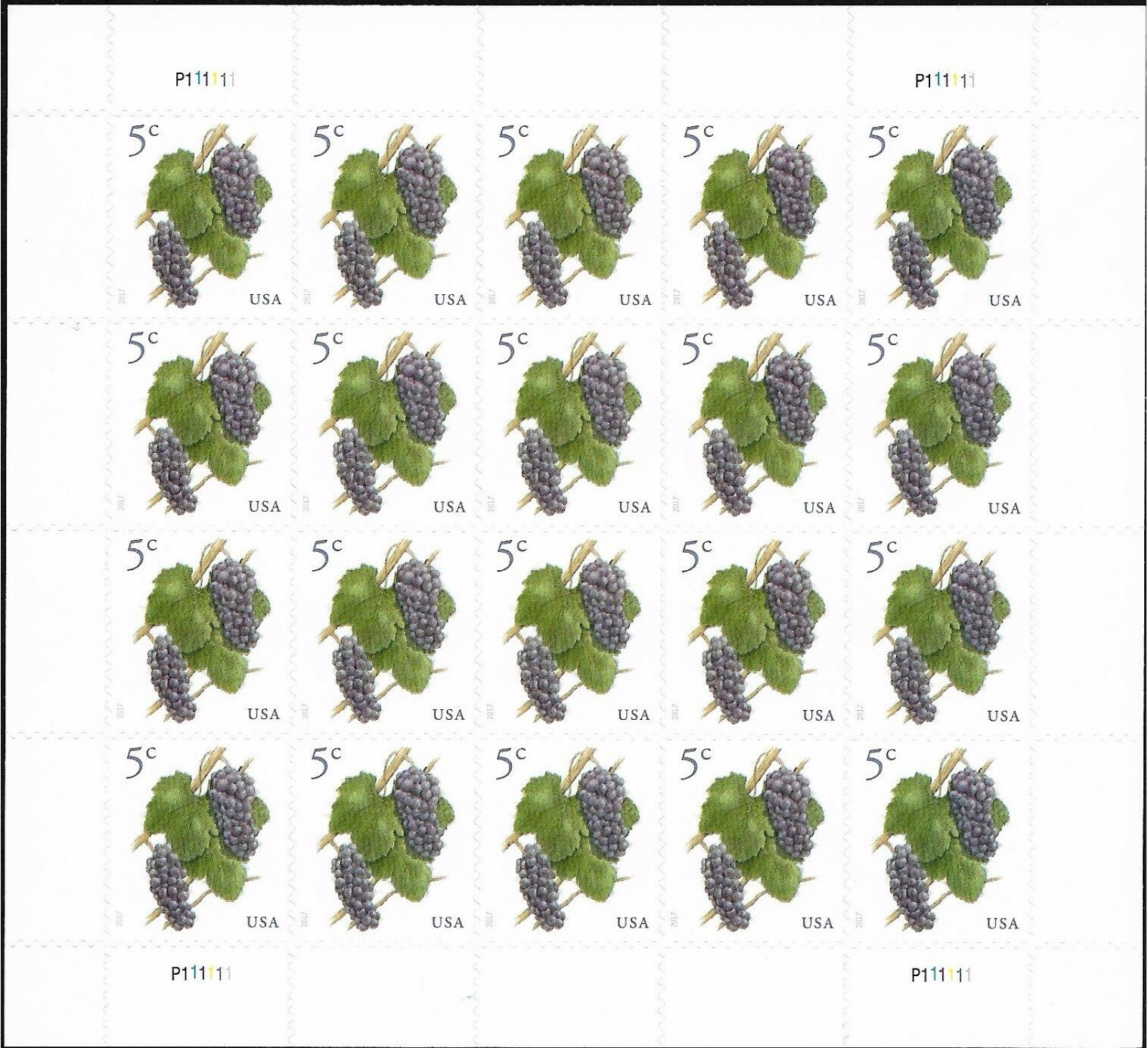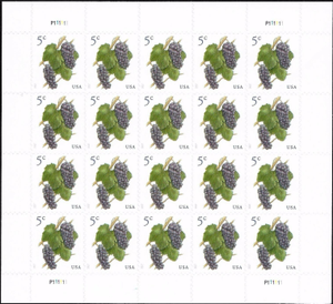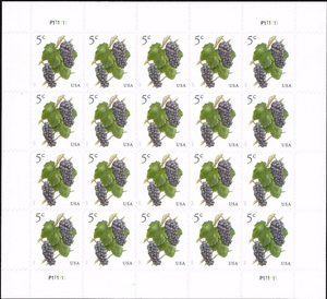 Grapes Stamp Sheet of Twenty 5 Cent Postage Stamps Scott 5177