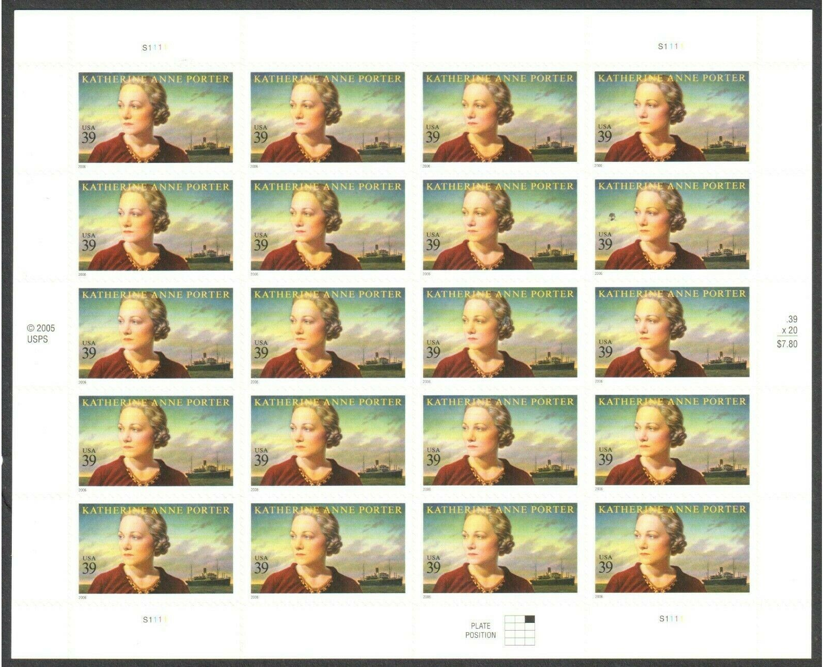 Katherine Anne Porter Sheet of Twenty 39 Cent Postage Stamps Scott 4030