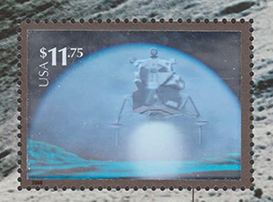 Landing on the Moon Hologram $11.75 Souvenir Sheet Express Mail Scott 3413
