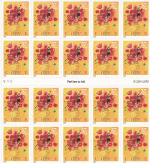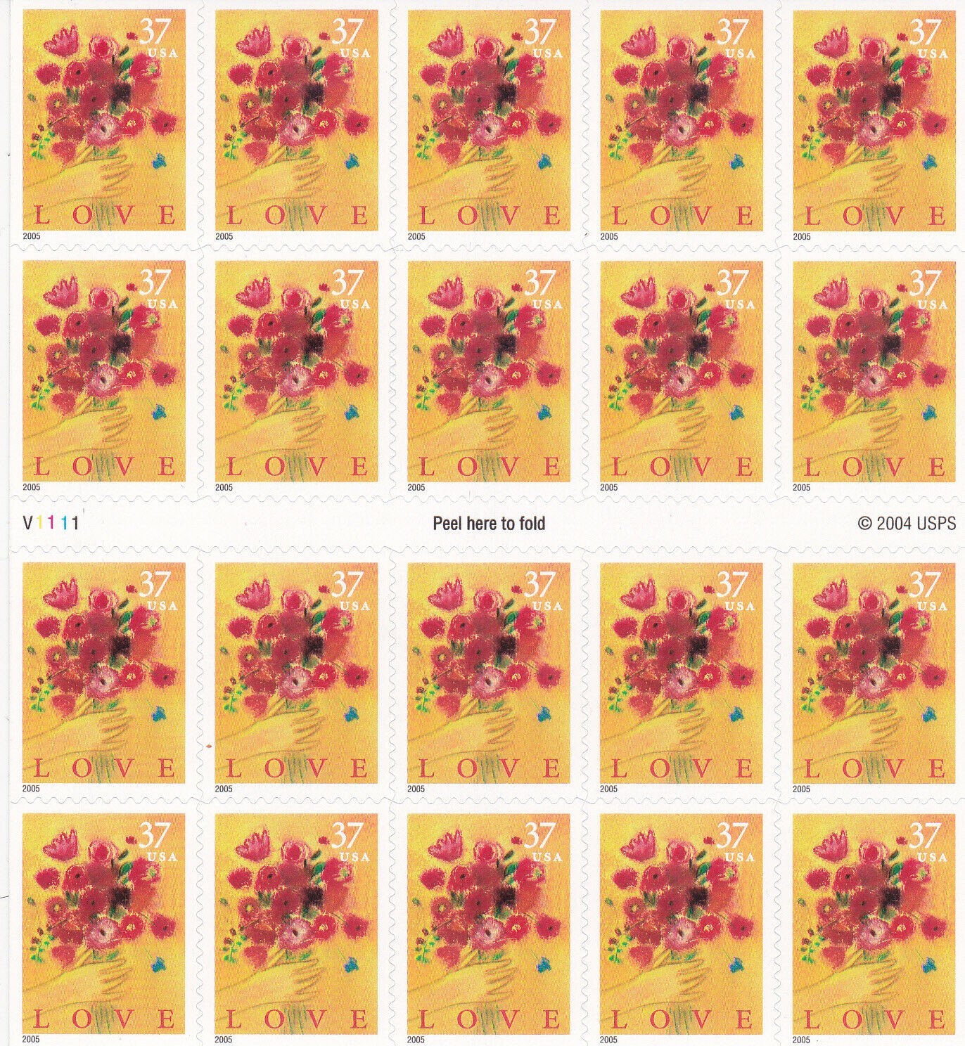 Love Bouquet Stamp Booklet of Twenty 37 Cent Stamps Scott 3898a
