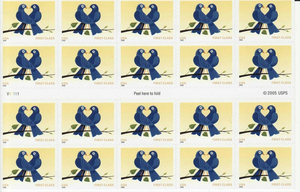 Love True Blue Love Birds Booklet 20 Stamps - 39 Cent Postage Stamps 3976