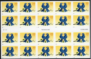 Love True Blue Love Birds Booklet 20 Stamps - 39 Cent Postage Stamps 4029a