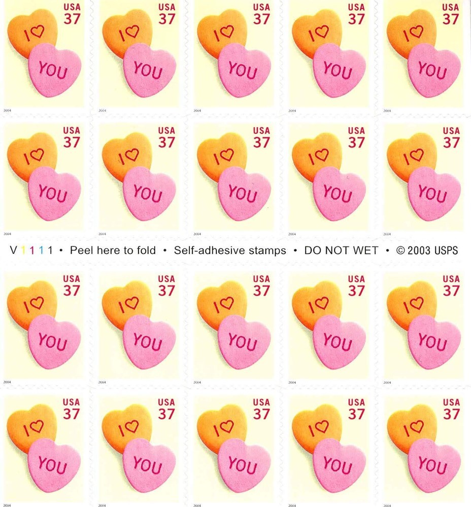 Love You Candy Hearts Stamp Booklet of Twenty 37 Cent Stamps Scott 3833