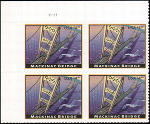 Mackinac Bridge Michigan Mighty Mac Pl# Block of Four $4.90 Scott 4438