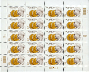 Nobel Prize Sheet of Twenty 34 Cent Postage Stamps Scott 3504