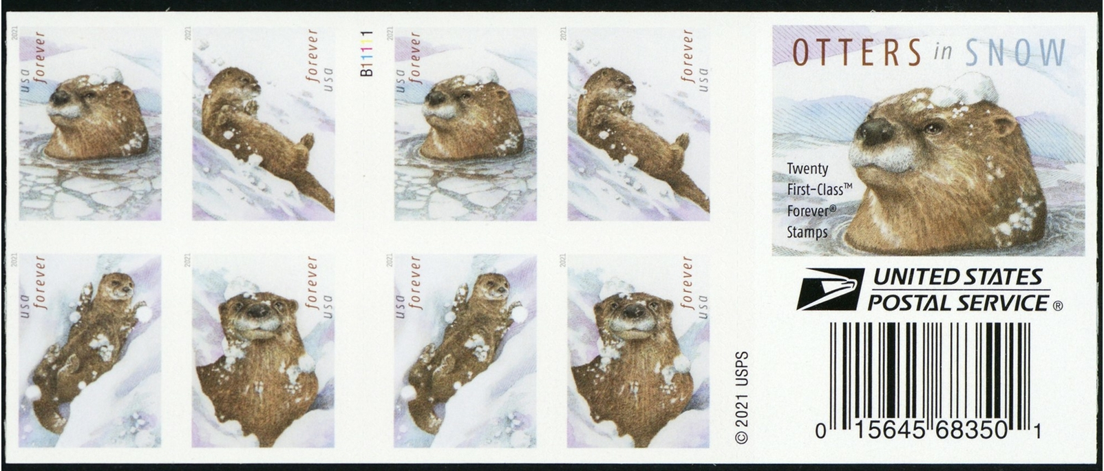 Otters In Snow Booklet of Twenty - Postage Stamps Scott 5651b
