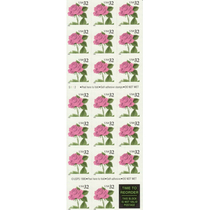Pink Rose Pane of Twenty 32 Cent Postage Stamps 2492a