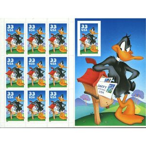 Daffy Duck Sheet of Ten Stamps with Imperforate 10th Stamp Error Scott 3307
