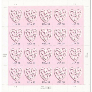 Heart Full Pane of Twenty 58 Cent Postage Stamps Scott 4152