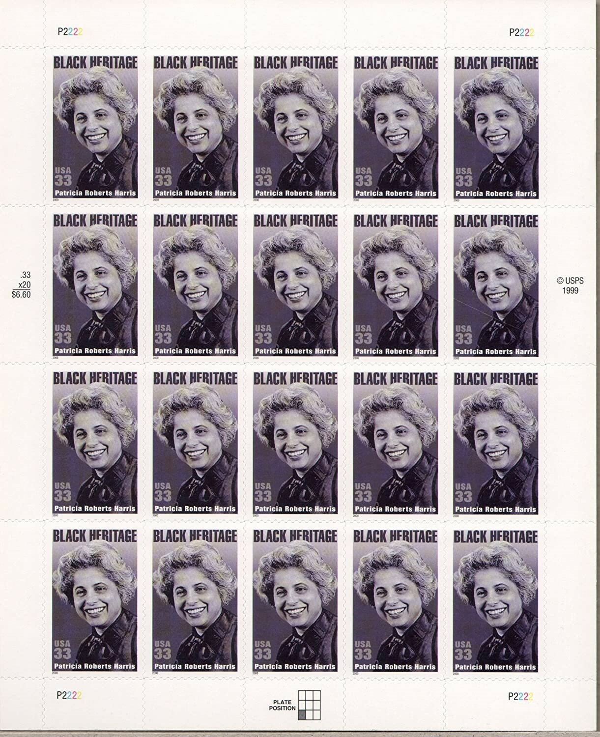 Patricia R. Harris Black Heritage Sheet of Twenty 33 Cent Scott 3371