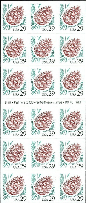 Pine Cone Pane of Eighteen 29 Cent Postage Stamps Scott 2491a