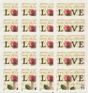 Rose and Love Letter ONE PACK OF TEN Stamps - 55 Cent Postage Stamps Scott 3499