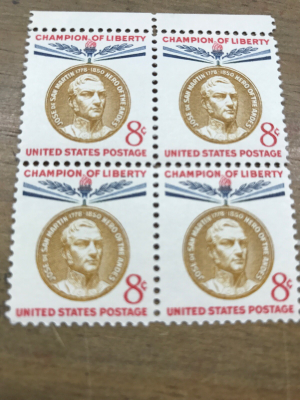 SCOTT # 1126 - 8 CENT JOSE DE SAN MARTIN - BLOCK OF 4 - MNH. Shipped with USPS First Class Package.