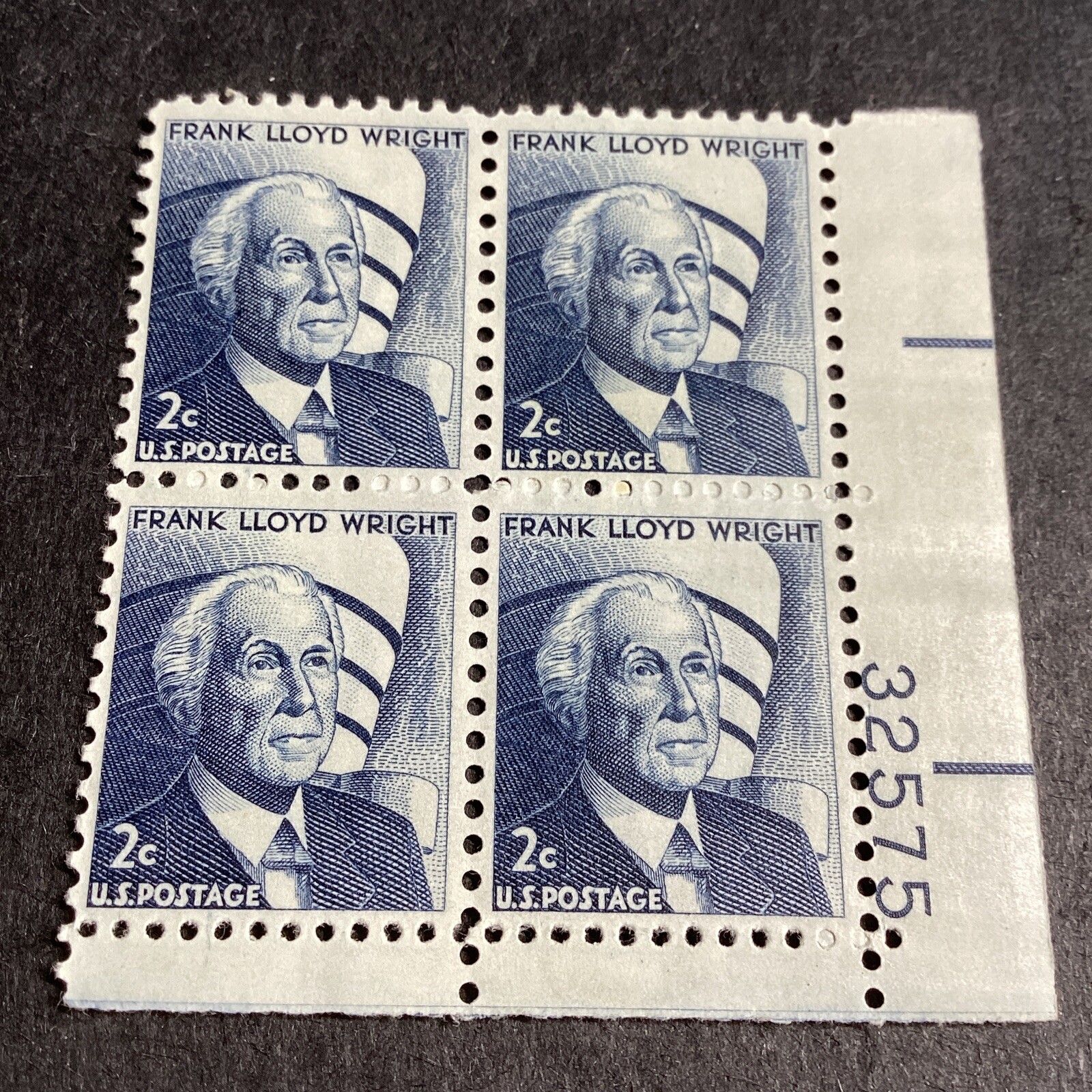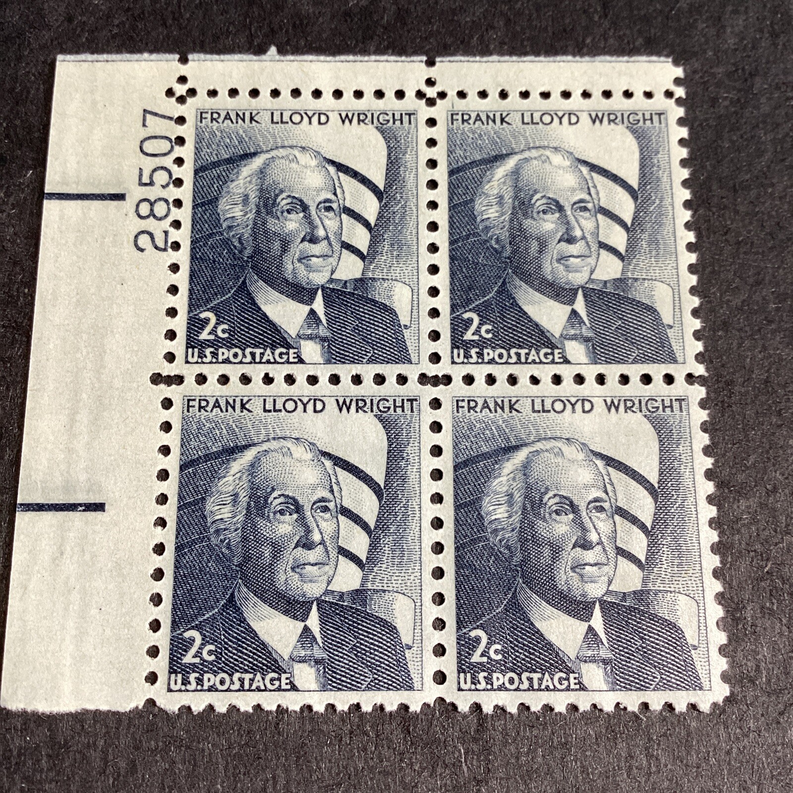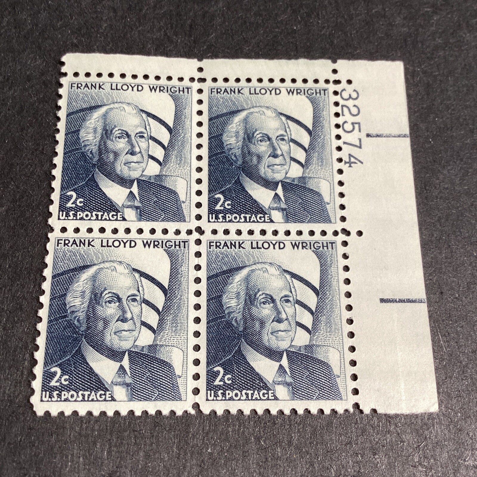 Scott #1280, 2c, Frank Lloyd Wright, Plate Block of 4, MNH-1966-US. Shipped with USPS Ground Advantage.