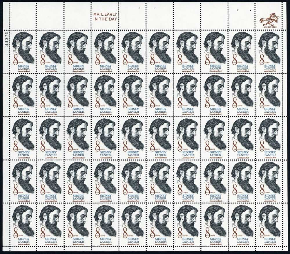 Scott 1446, Mint NH 8¢ Sheet of 50 Stamps Sidney Lanier Poet