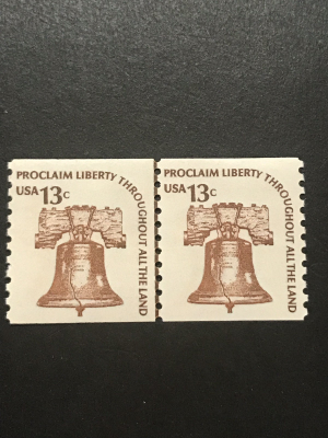 *SCOTT #1618 – 1975 13c Liberty Bell, perf 10 coil- LINE PAIR -MNH