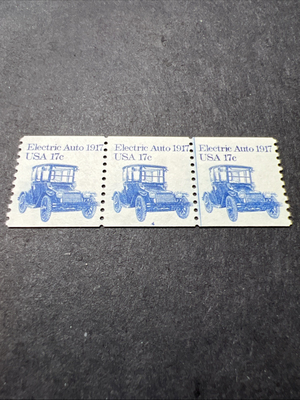 Scott#1906, Electric Auto 1917 : Transportation-Plate#4 Strip Of 3 W/line-MNH-US. Shipped with USPS Ground Advantage.
