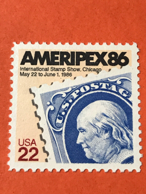 Scott#2145- Ameripex '86- Chicago Stamp Show, 22c MNH 1985. Shipped with USPS First Class