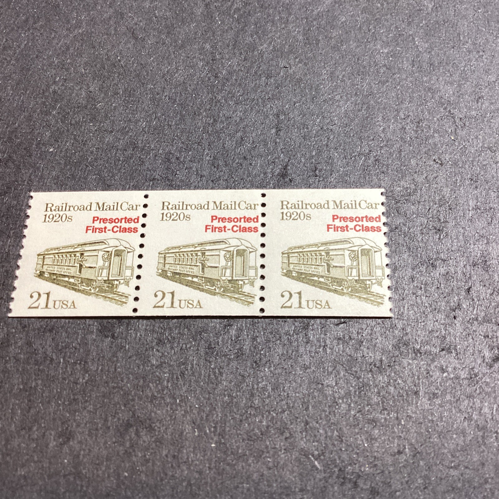 Scott #2265-21c-Transportation-Railroad Mail Car-Coil Strip of 3-Dull Dry Gum-US. Shipped with USPS Ground Advantage.
