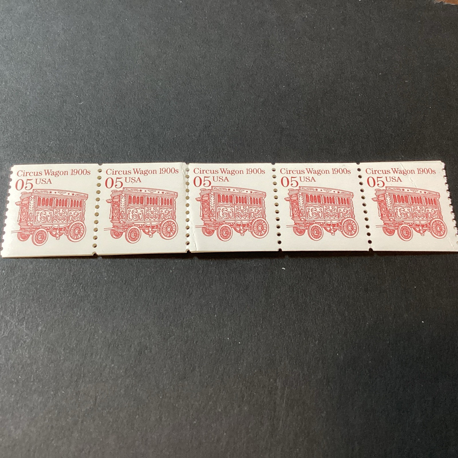 Scott# 2452B-1990-5 Cent Circus Wagon-Shiny Gum-Strip of 5-MNH-US. Shipped with USPS Ground Advantage.