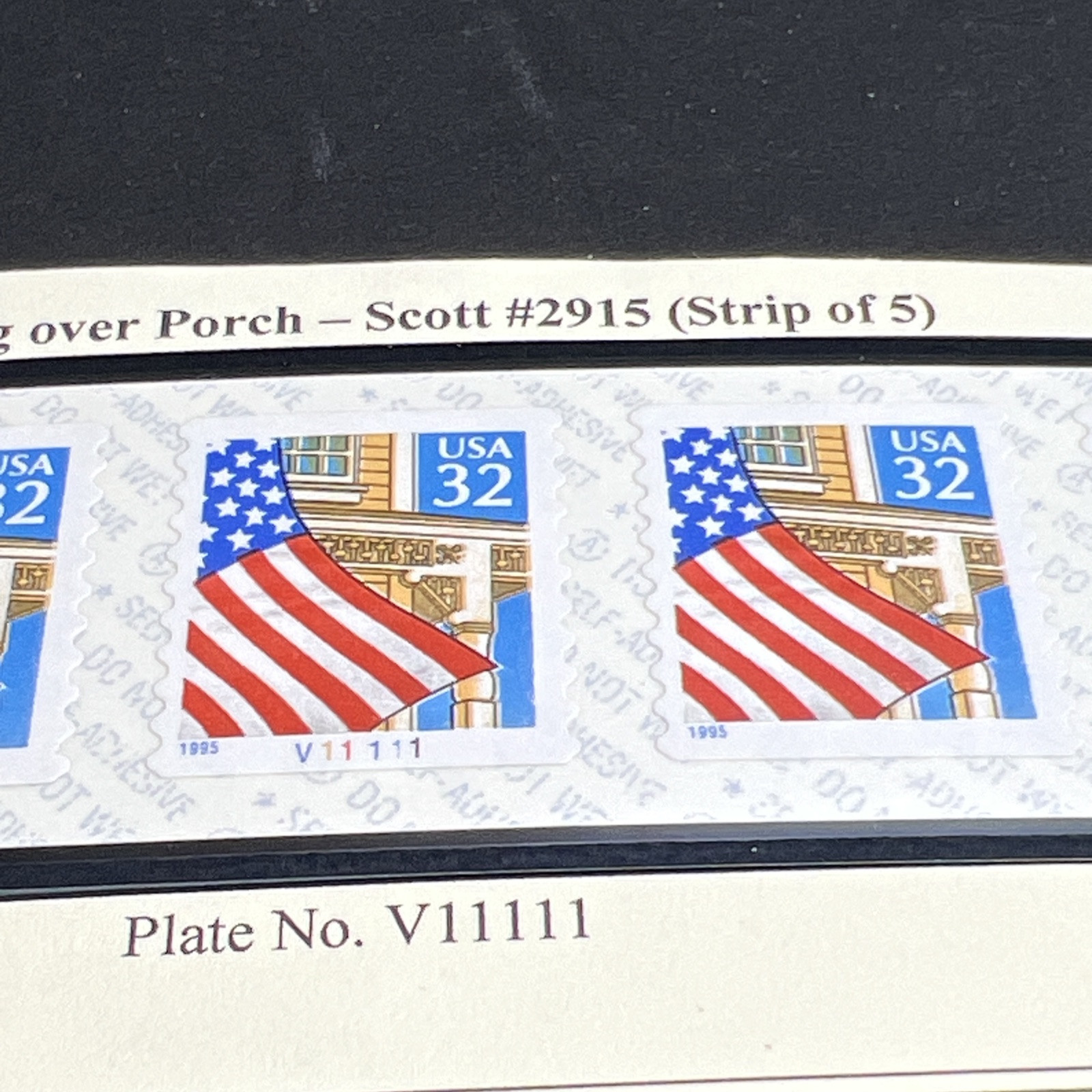 SCOTT#2915 32 CENT FLAG OVER PORCH COIL STRIP OF 5 Plate#V11111-MNH-US. Shipped with USPS Ground Advantage.