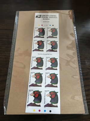 Scott# 3050a- $2.00 Pheasant Booklet Pane 1998-P/N V222 MNH-10 Stamps.