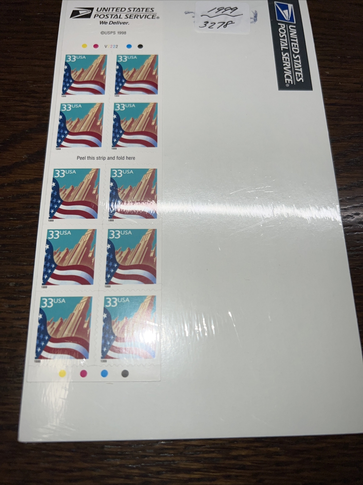 Scott#3278-Flag Over City Booklet of 10 Stamps Pl # V222-1999-NIP.