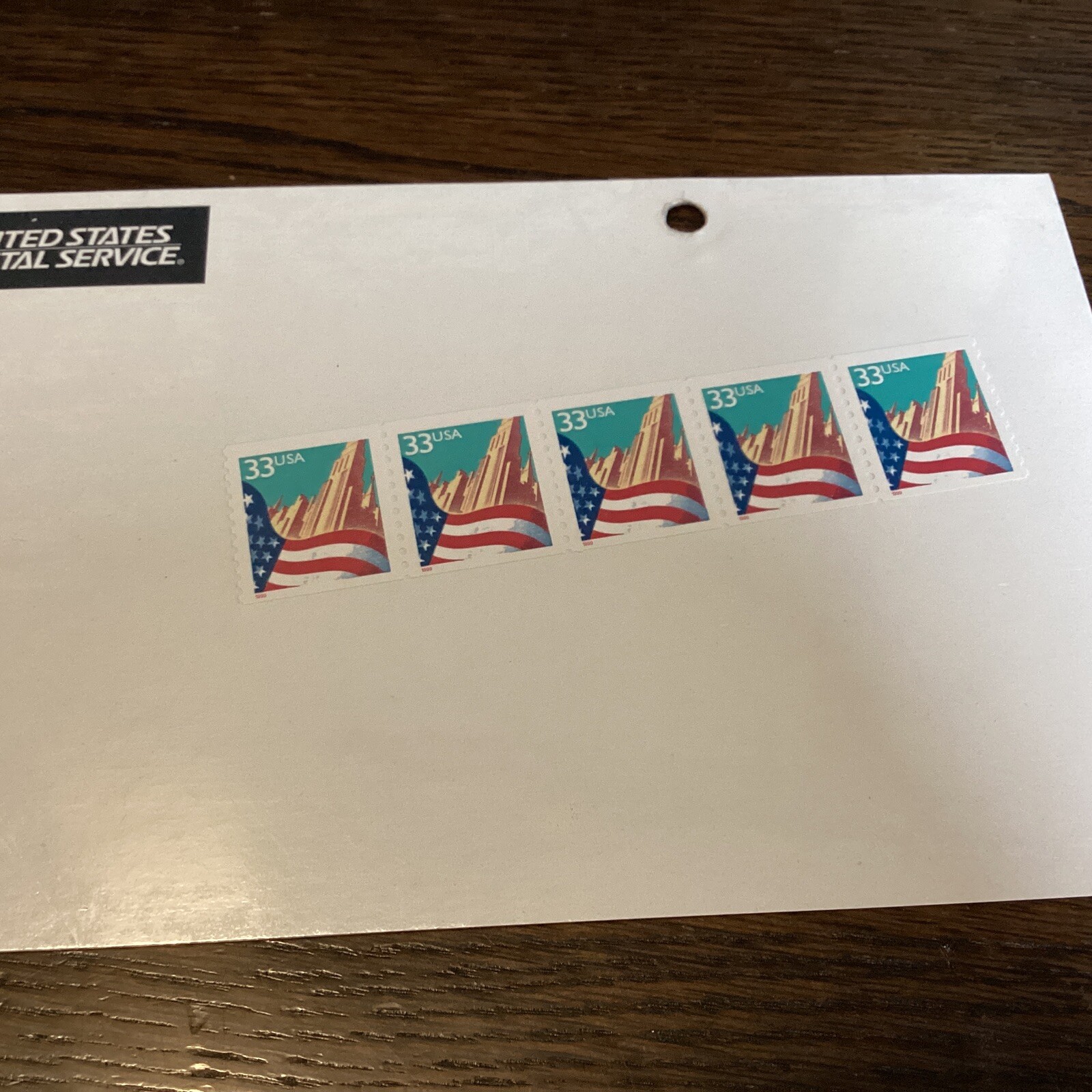 Scott# 3280-1999 -33¢ Flag Over City Stamp Coil Strip of 5 MNH-NIP-US.