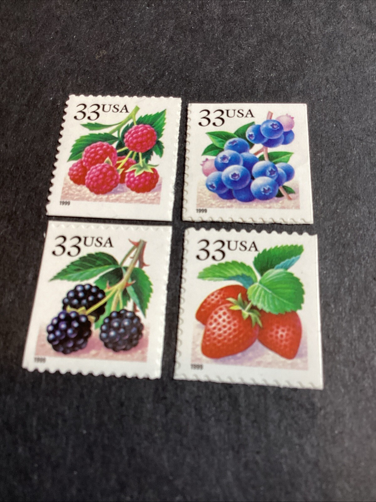 Scott #3294-3297 Fruit Berries (1999) SET of 4 Singles MNH-US. Shipped with USPS Ground Advantage.