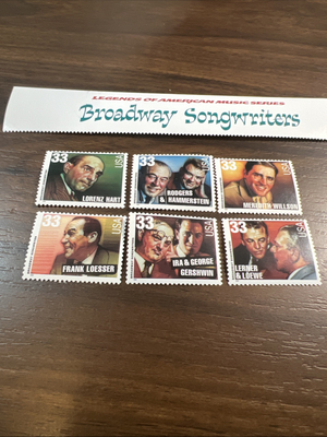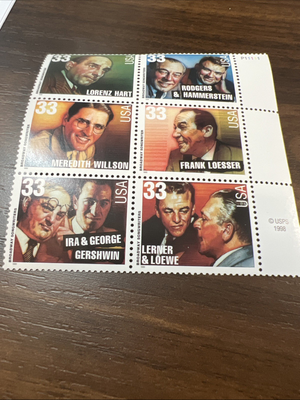 Scott# 3345-50-1999-Broadway Songwriters-Block of 6 Or Singles With Header Strip. Shipped with USPS Ground Advantage.
