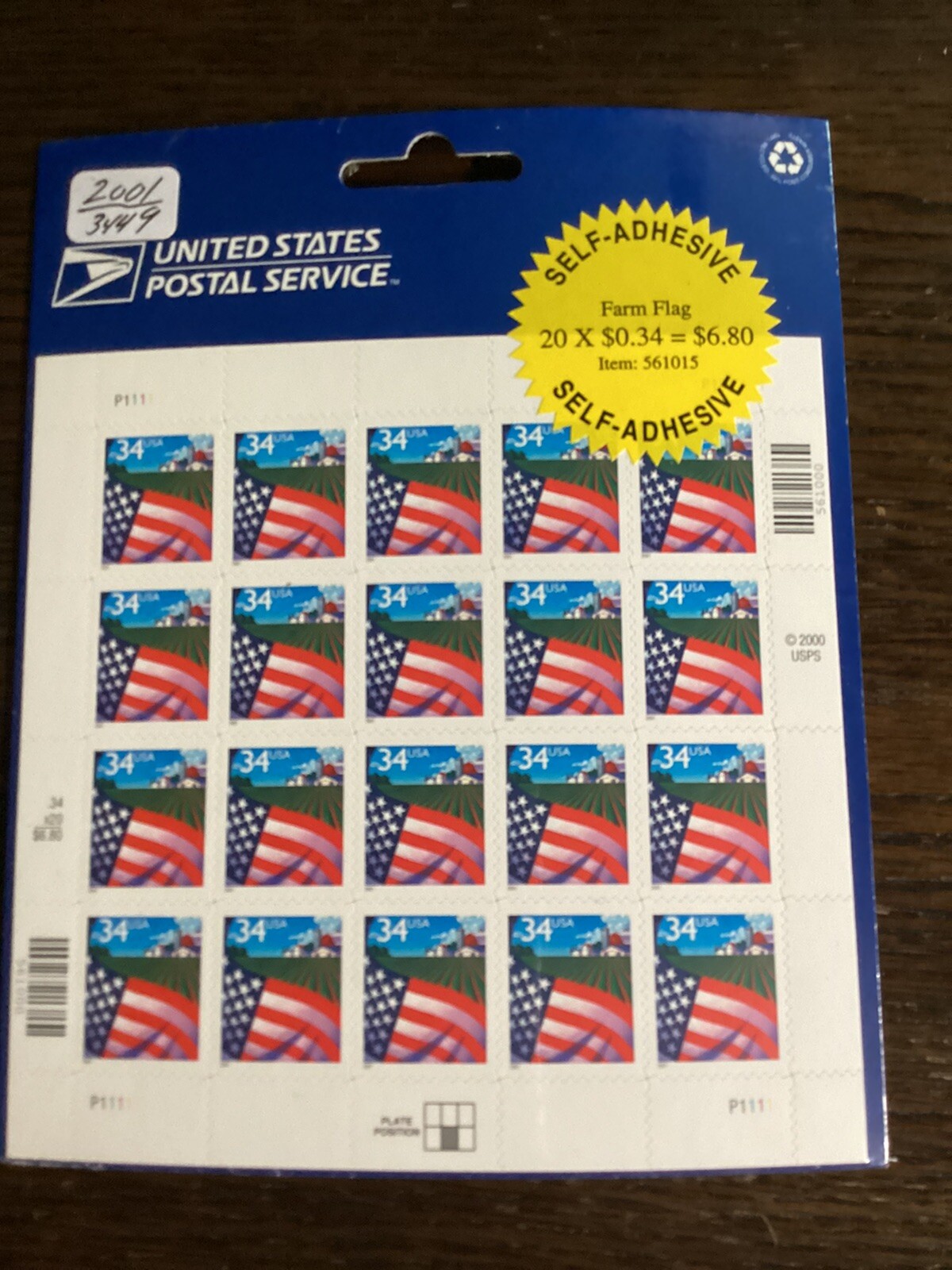 Scott#3449- 34c Flag over Farm, SA, Sheet of 20-MNH-NIP-US.