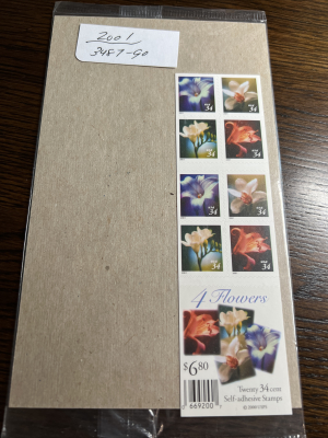 Scott#3487-3490 Full Pane Of 20 Stamps MNH, 4 Flowers-2001-NIP.