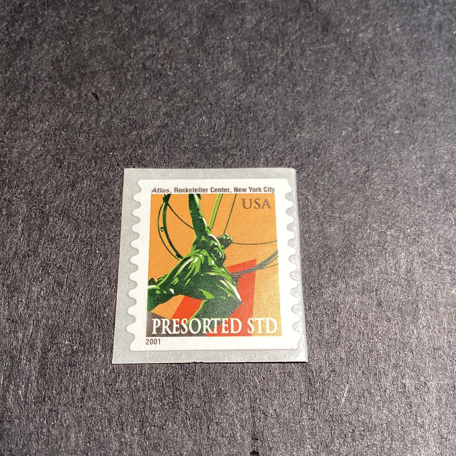 Scott 3520 2001 10c Presorted Atlas Statue8 1/2 vertical perf MNH-US.