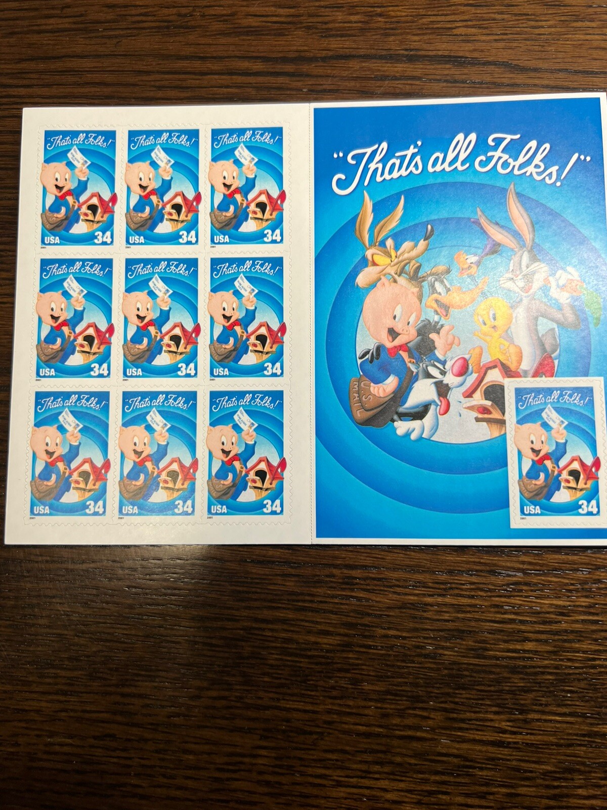 SCOTT#3534 34¢ THAT'S ALL FOLKS Porky Pig At Mailbox Souvenir Sheet MNH 2013.