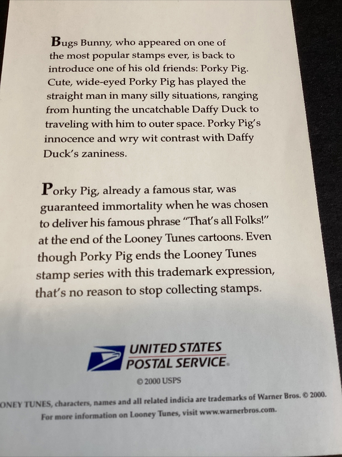 Scott #3534c Porky Pig "That's All Folks" Single Stamp -On Card-MNH-2001-US.