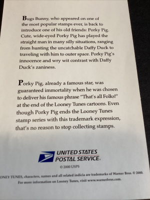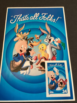 Scott #3534c Porky Pig "That's All Folks" Single Stamp -On Card-MNH-2001-US